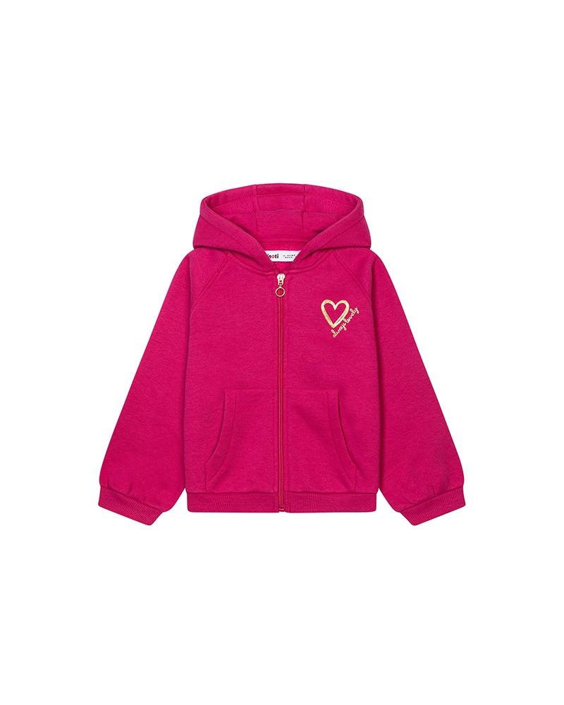 هودي وردي من القطن بسحاب بأكمام طويلة لإطلالة مريحة وعادية، للفتيات من سن 3 إلى 8 سنة