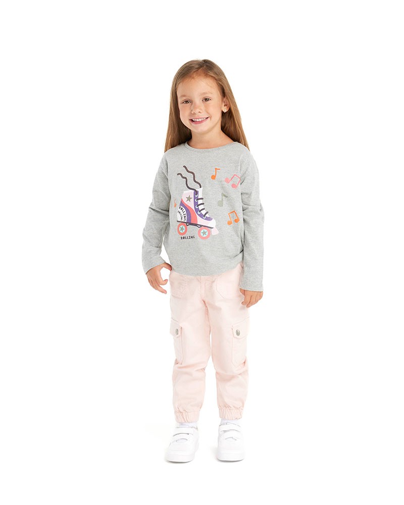 بنطلون قتالي وردي بأطراف مطاطية وجيبين أماميين وجيبين جانبيين وجيبين خلفيين، للفتيات من سن 1 إلى 14 سنة.