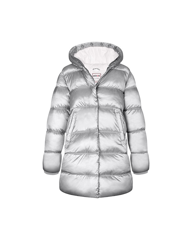 معطف طويل فضي مقاوم للماء بغطاء رأس ثابت وجيوب أمامية لإبقاء طفلك دافئًا ، للفتيات من سن 1 إلى 3 سنوات