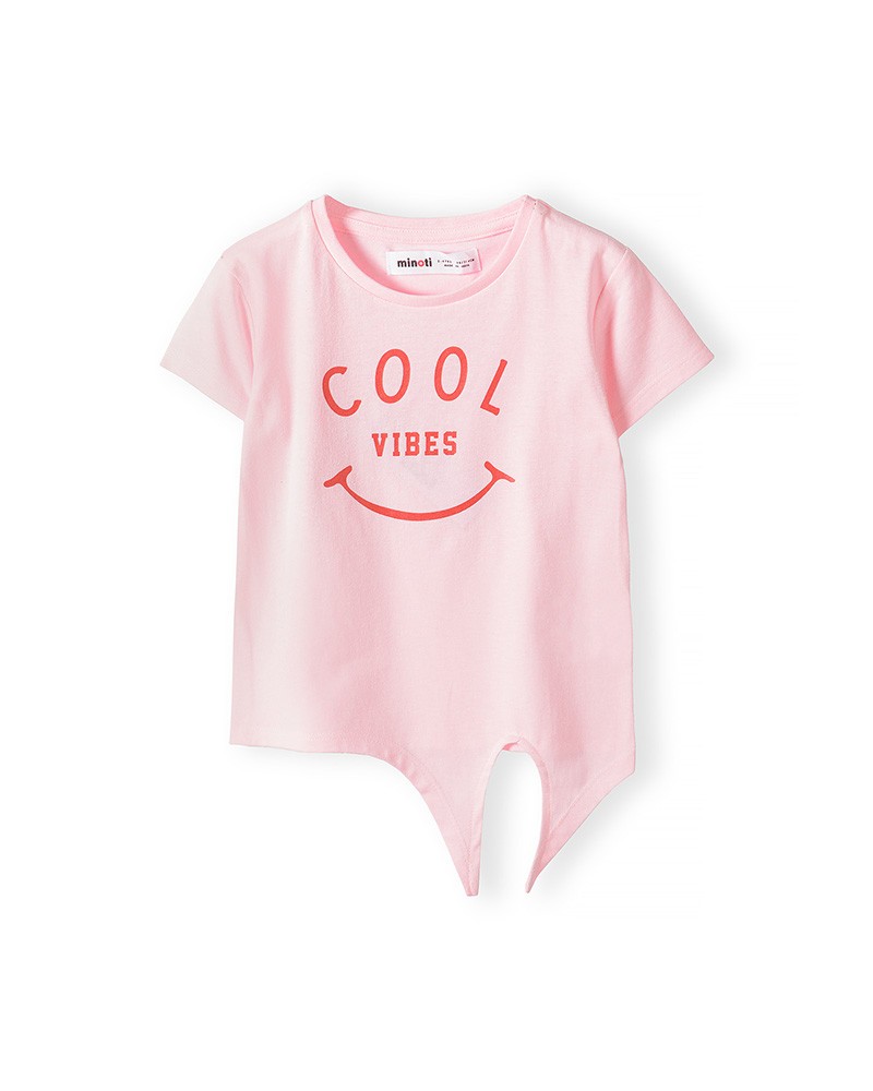 Pink crew neck cool vibes t-shirt with tie-front for girls aged from 1 to 8 years.