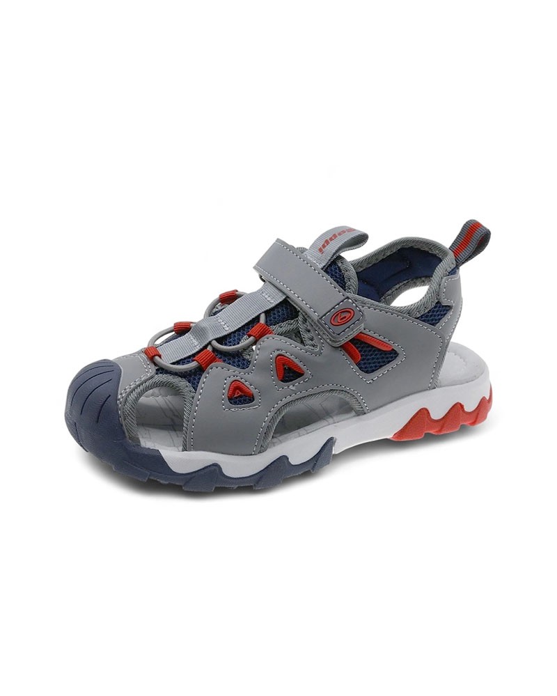Sandales pour enfants, en cuir synthétique et textile. Serrage par velcro pour un enfilage et un réglage faciles. Semelle intérieure anatomique 100% cuir. Semelle antidérapante.