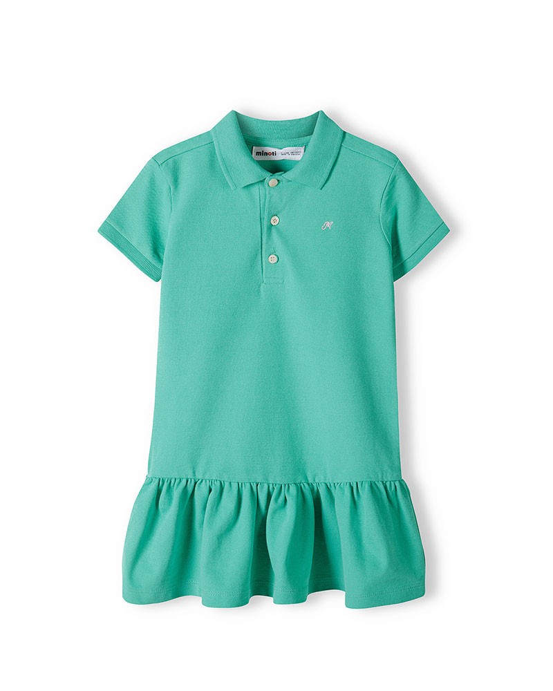 Robe polo verte en piqué avec col montant, manches courtes et demi-patte de boutonnage sécurisée sur le devant pour les filles de 3 à 14 ans.